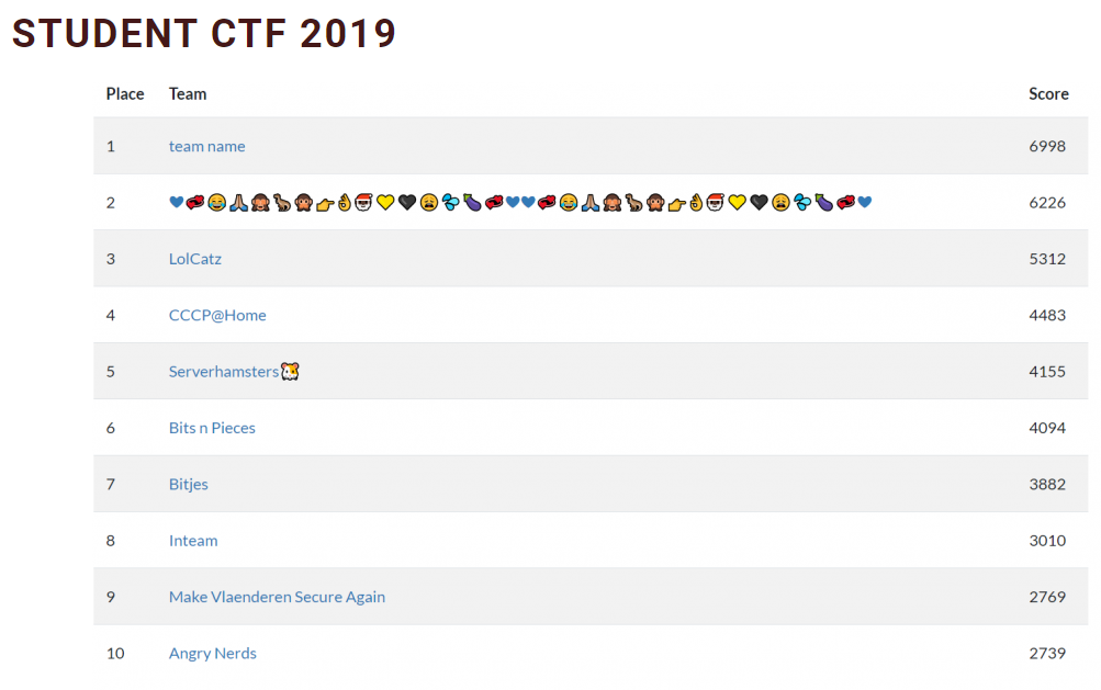As you can see in the leaderboards, my team (called team name) got the first place in the competition.